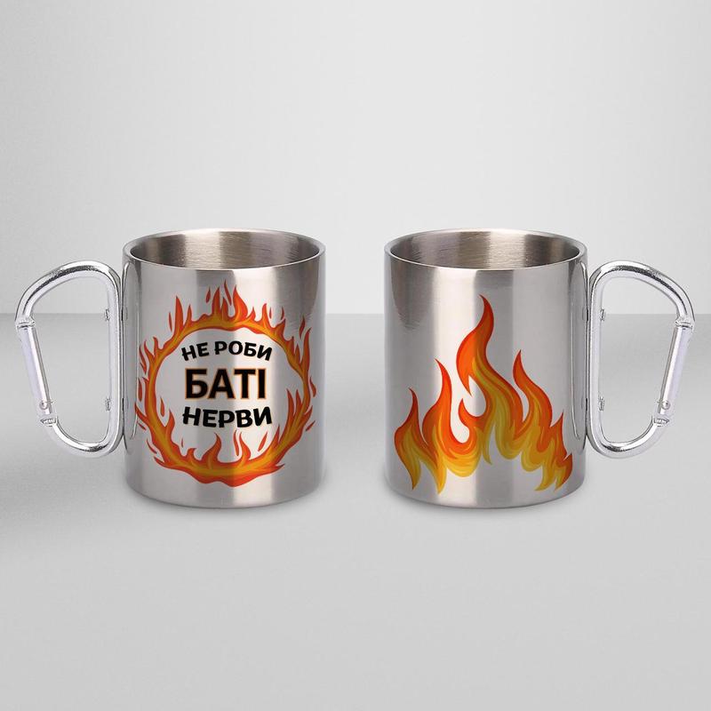 Чашка металева з принтом "не роби баті нерви" 300 мл з карабіном, срібляста