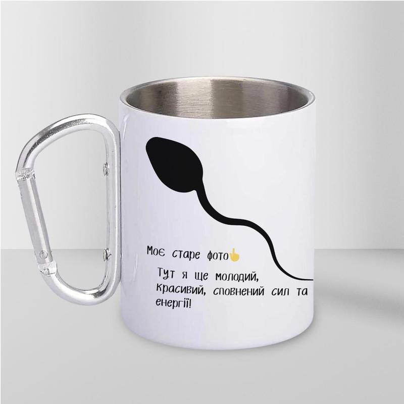 Чашка металева з принтом "моє старе фото" 300 мл з карабіном, біла