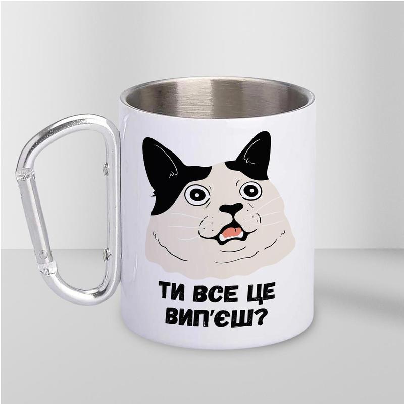 Кружка металева з карабіном "ти все це випʼєш?" 300 мл біла