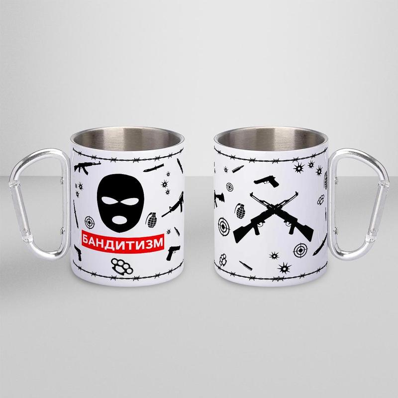 Чашка металева з принтом "бандитизм" 300 мл з карабіном, біла