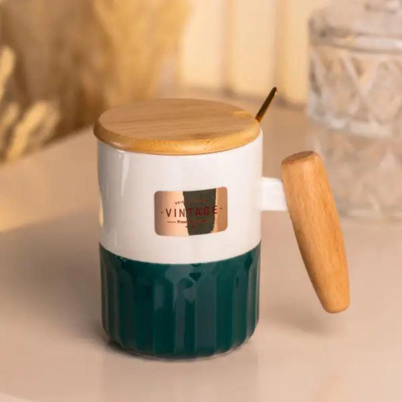 Чашка керамическая с бамбуковой крышкой и ручкой 400 мл. Эта красивая керамическая чашка с бамбуковой крышкой и ручкой однозначно станет прекрасным подарком! Она неприхотлива в эксплуатации, отлично сохраняет тепло и подойдет для горячих и холодных напитков. Основные характеристики чашки Объем 400 мл; Высота 11.0 см; Диаметр 8.0 см. Основные преимущества чашки Сохранение тепла: керамика прекрасно сохраняет тепло напитка, позволяя вам наслаждаться чаем или кофе дольше. Экологичность: керамика – это натуральный и безопасный материал, не выделяющий вредных веществ. Универсальность: керамические чашки подходят для горячих и холодных напитков. Практичность: керамические чашки легко моются и не впитывают запахи. Долговечность: керамические чашки при правильном уходе прослужат вам долгие годы.