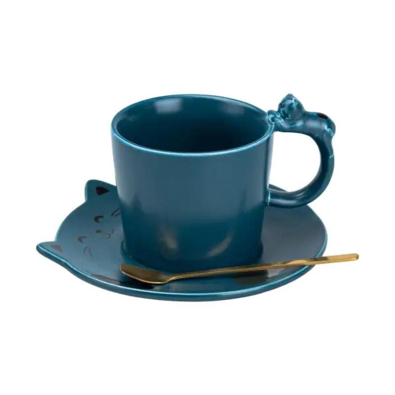 Чашка с блюдцем и ложкой керамическая 250 мл Котик. Эта красивая керамическая чашка в виде Котика с блюдцем и ложкой однозначно станет прекрасным подарком как для взрослого, так и для ребенка! Она неприхотлива в эксплуатации, отлично сохраняет тепло и подойдет для горячих и холодных напитков. Основные характеристики чашки Объем 250 мл; Высота 8 см; Диаметр 8.5 см. Основные преимущества чашки Сохранение тепла: керамика прекрасно сохраняет тепло напитка, позволяя вам наслаждаться чаем или кофе дольше. Экологичность: керамика – это натуральный и безопасный материал, не выделяющий вредных веществ. Универсальность: керамические чашки подходят для горячих и холодных напитков. Практичность: керамические чашки легко моются и не впитывают запахи. Долговечность: керамические чашки при правильном уходе прослужат вам долгие годы.