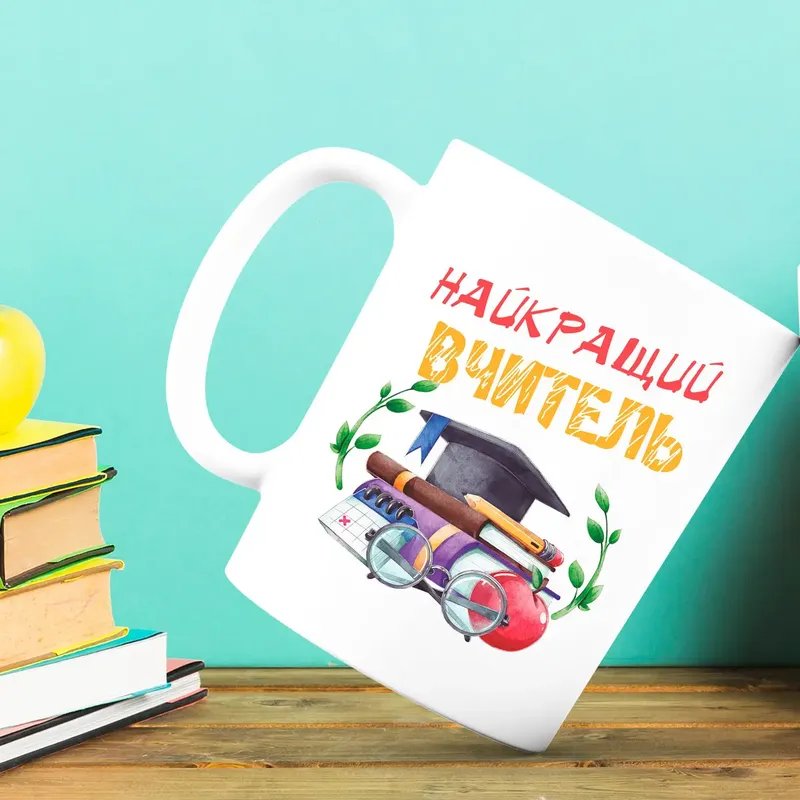 Белая кружка (чашка) с принтом "лучший учитель" 2