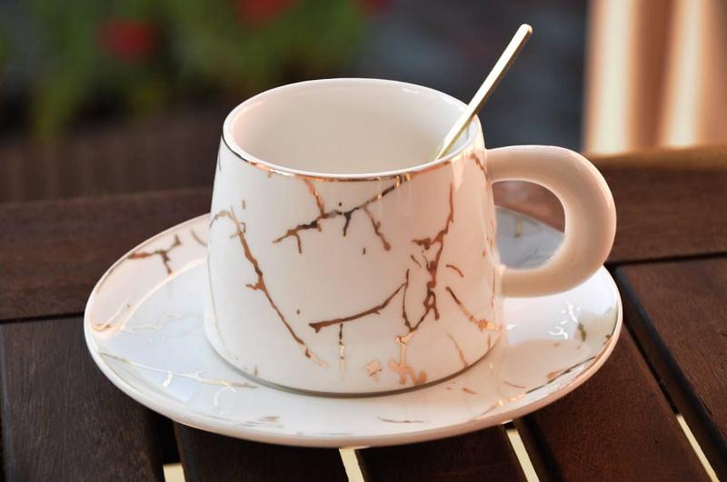 Чашка с блюдцем "мрамор", 200 мл (цвет - белый)