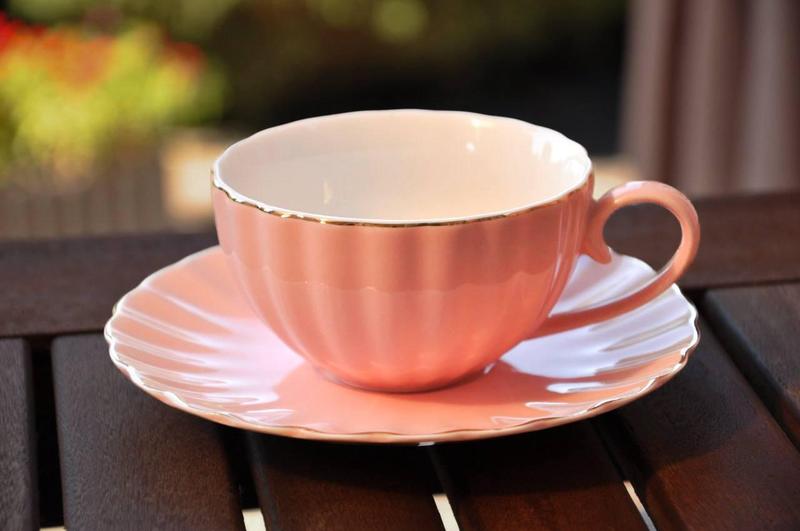 Кофейная чашка с блюдцем, 200 мл (цвет - розовый)