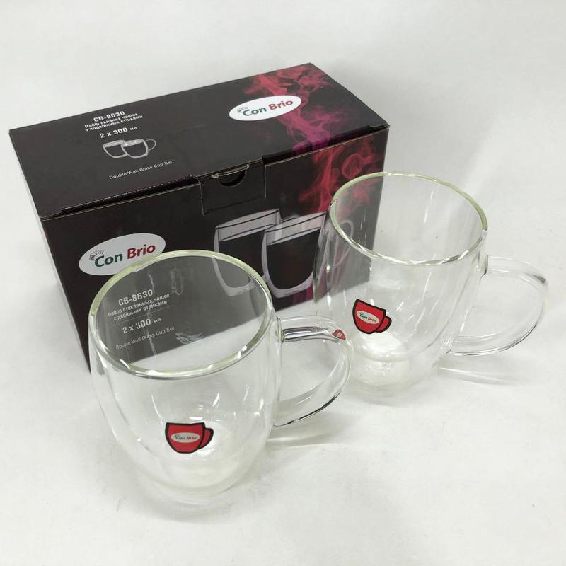Набор стеклянных чашек с двойными стенками con brio cb-8630 2шт, 300мл, кружки с двойными...