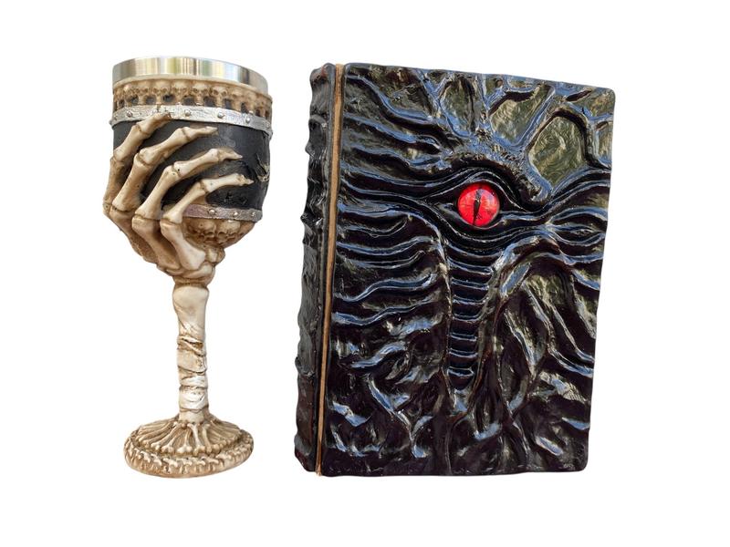 Подарочный набор бокал 3d рука с черепами и блокнот 3d «книга, что смотрит в ответ»