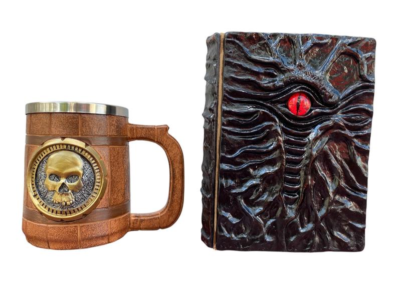 Подарочный набор кружка 3d череп gold rose и блокнот 3d «книга, что смотрит в ответ»