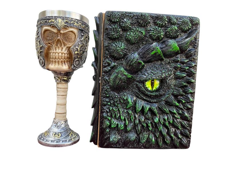 Подарочный набор бокал 3d череп в шлеме и блокнот 3d «око лесного дракона»