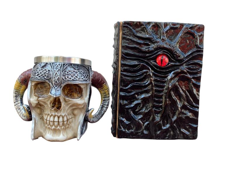Подарочный набор кружка 3d рогатый череп и блокнот 3d «книга, что смотрит в ответ»