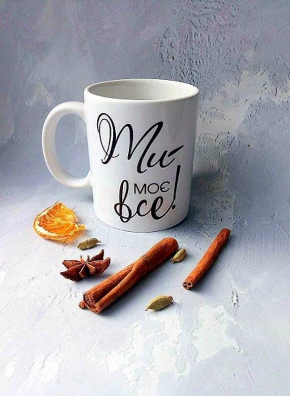 Чашка Ты моя все Оригинальная чашка "Ты мое все" будет напоминанием о Вашем близком человеке. Характеристики: Кружка: белая глянцевая Размер запечатанки: 19x9,5 см Печать: полноцветная, технология гравертон.