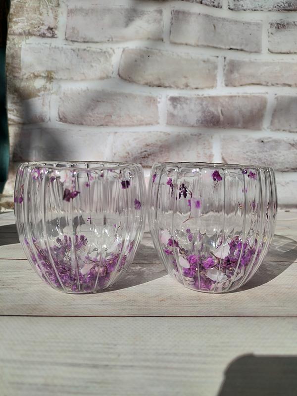 Набор чашек vittora цветочная тишина с двойным дном и сухоцветами в стенках 2 шт 250 мл пр...
