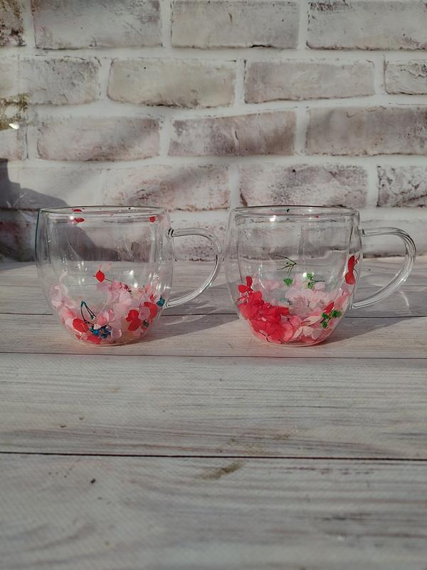 Набор чашек vittora vt-5329-250 с двойным дном и сухоцветами в стенках 2 шт 250 мл прозрач...