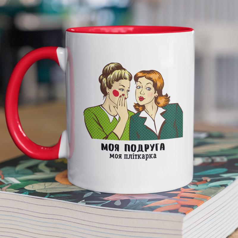 Чашка керамічна з принтом "моя подруга" 330 мл, біла з червоною ручкою