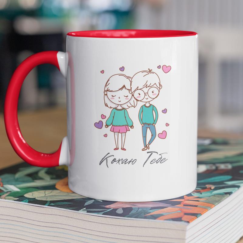 Чашка керамічна з принтом "кохаю тебе" 330 мл, біла з червоною ручкою