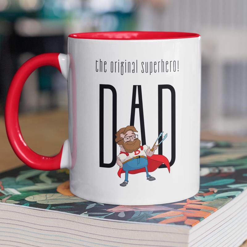 Чашка керамічна з принтом "dad" 330 мл, біла з червоною ручкою