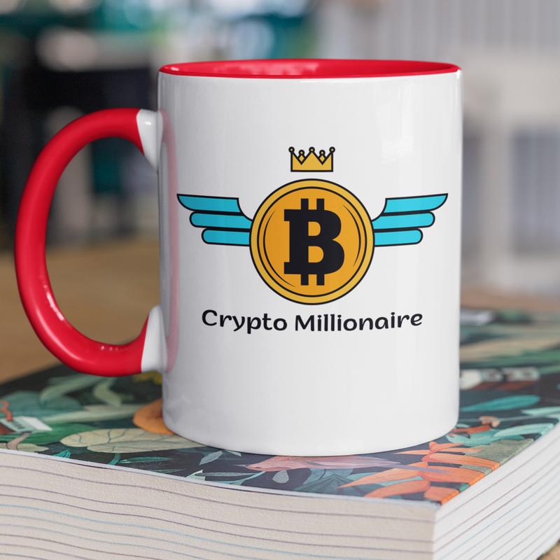 Чашка керамічна з принтом "crypto millionaire" 330 мл, біла з червоною ручкою