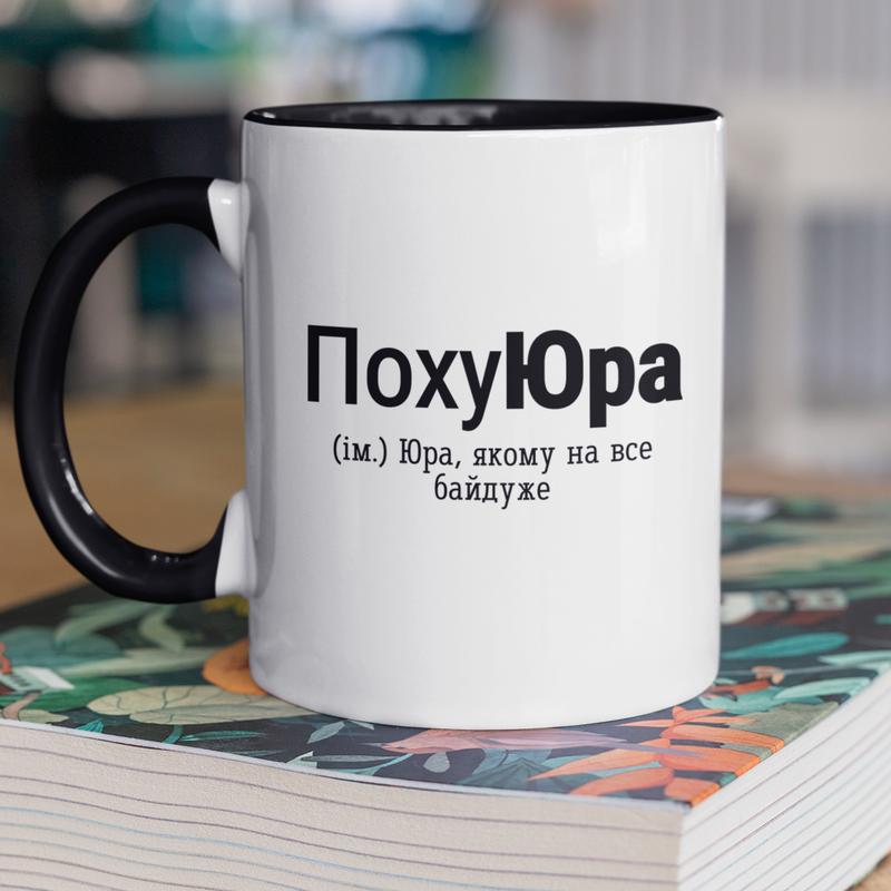Чашка керамічна з принтом "похуюра" 330 мл, біла з чорною ручкою