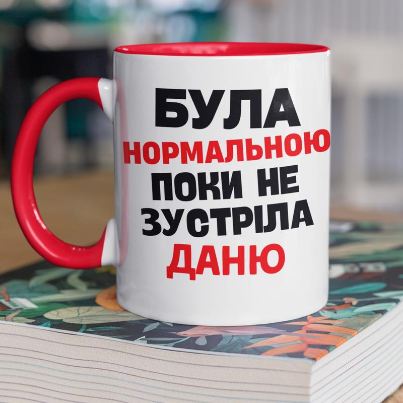 Чашка керамічна з принтом "була нормальною поки не зустріла даню" 330 мл, біла з червоною...