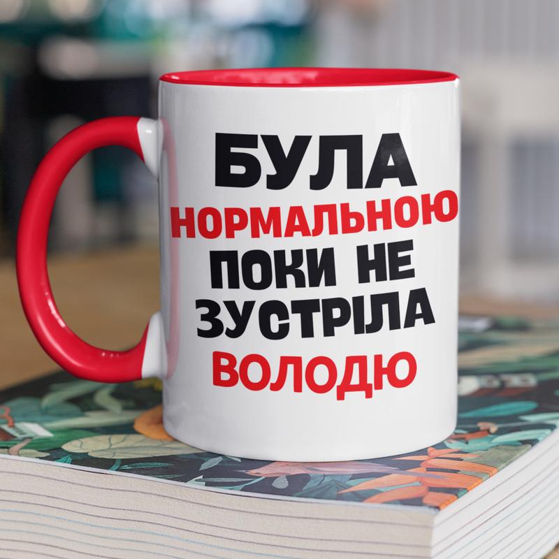 Чашка керамічна з принтом "була нормальною поки не зустріла володю" 330 мл, біла з червоно...