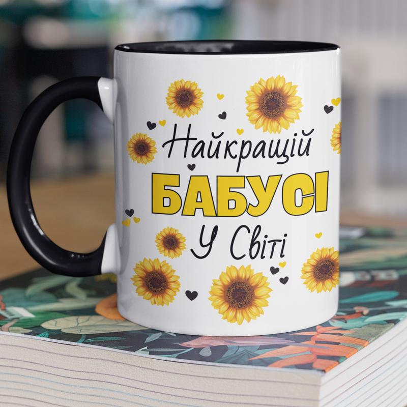 Чашка керамічна з принтом "найкращій бабусі у світі" 330 мл, біла з чорною ручкою
