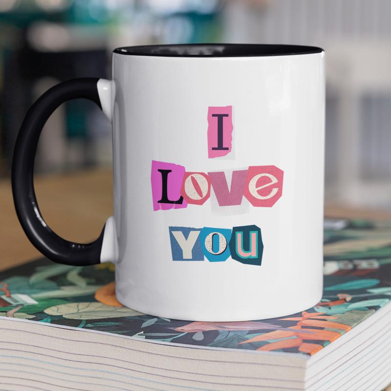 Чашка керамічна з принтом "i love you" 330 мл, біла з чорною ручкою