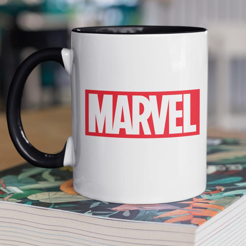 Чашка керамічна з принтом "marvel" 330 мл, біла з чорною ручкою