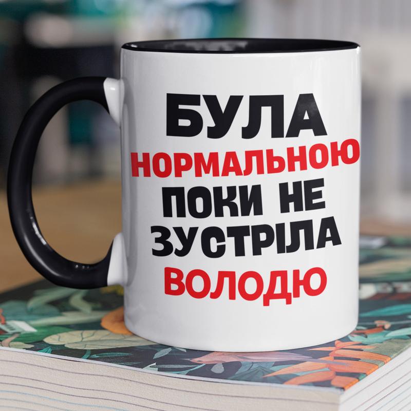 Чашка керамічна з принтом "була нормальною поки не зустріла володю" 330 мл, біла з чорною...