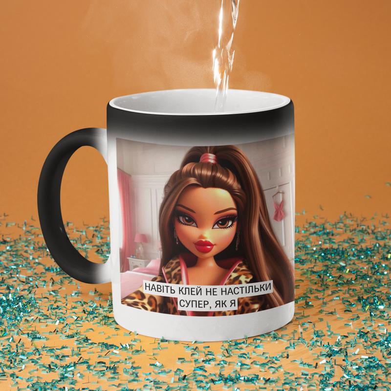 Чашка хамелеон керамічна з принтом "клей не настільки супер як я" 330 мл