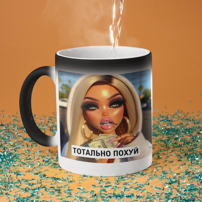 Чашка хамелеон керамічна з принтом "тотально по*уй" 330 мл
