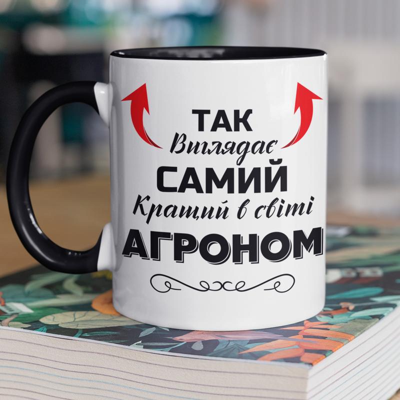 Чашка керамічна з принтом "так виглядає самий кращий в світі агроном" 330 мл, біла з чорно...
