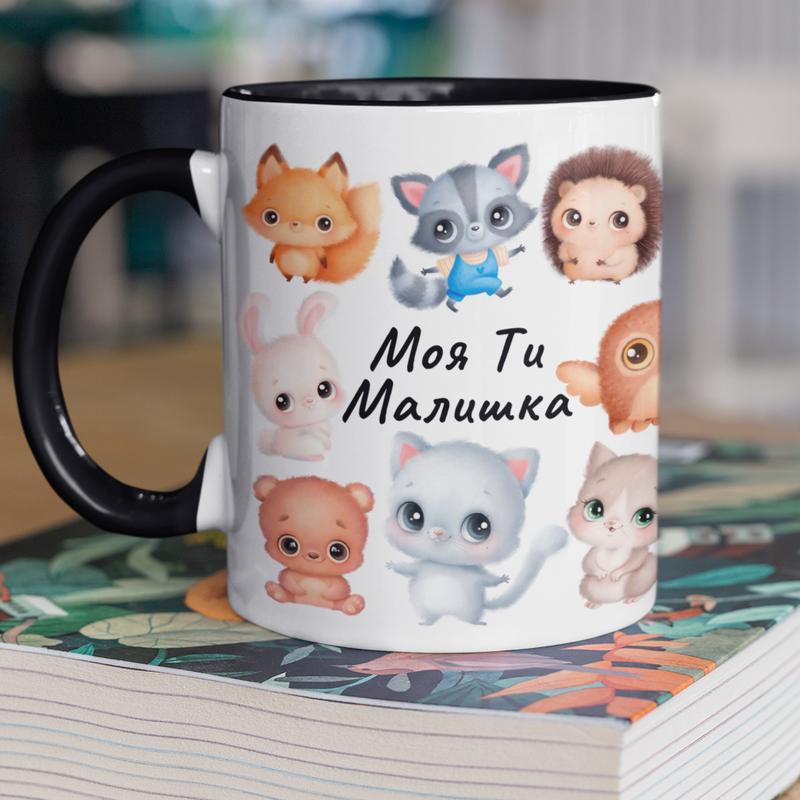 Чашка керамічна з принтом "моя ти малишка" 330 мл, біла з чорною ручкою