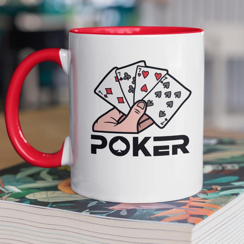 Чашка керамічна з принтом "poker" 330 мл, біла з червоною ручкою