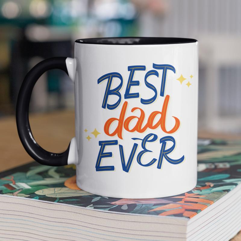 Чашка керамічна з принтом "best dad ever" 330 мл, біла з чорною ручкою