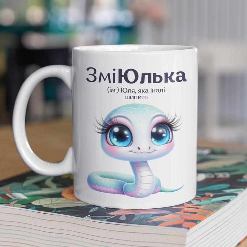 Чашка керамічна з принтом "зміюлька" 330 мл, біла