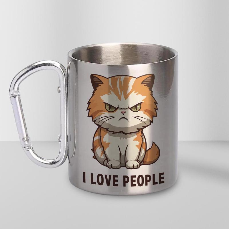 Чашка металева з принтом "i love people" 300 мл з карабіном, срібляста
