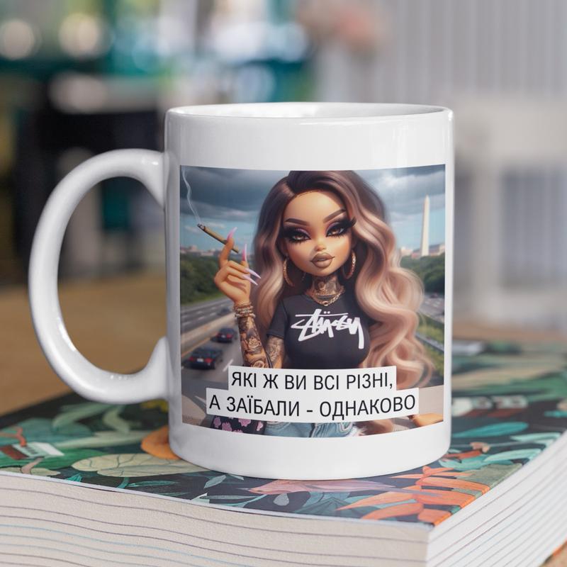Чашка керамічна з принтом "які ж ви всі різні" 330 мл, біла