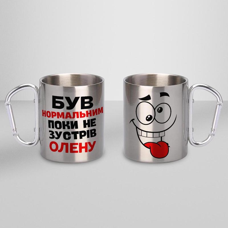 Кружка металева з карабіном "був нормальним поки не зустрів олену" 300 мл срібляста