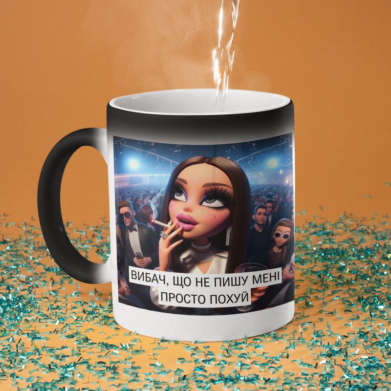 Чашка хамелеон керамічна з принтом "вибач що не пишу" 330 мл