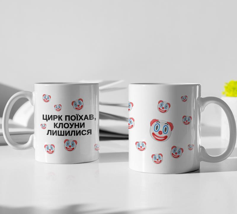 Чашка керамічна з принтом "цирк поїхав клоуни лишилися" 330 мл, біла