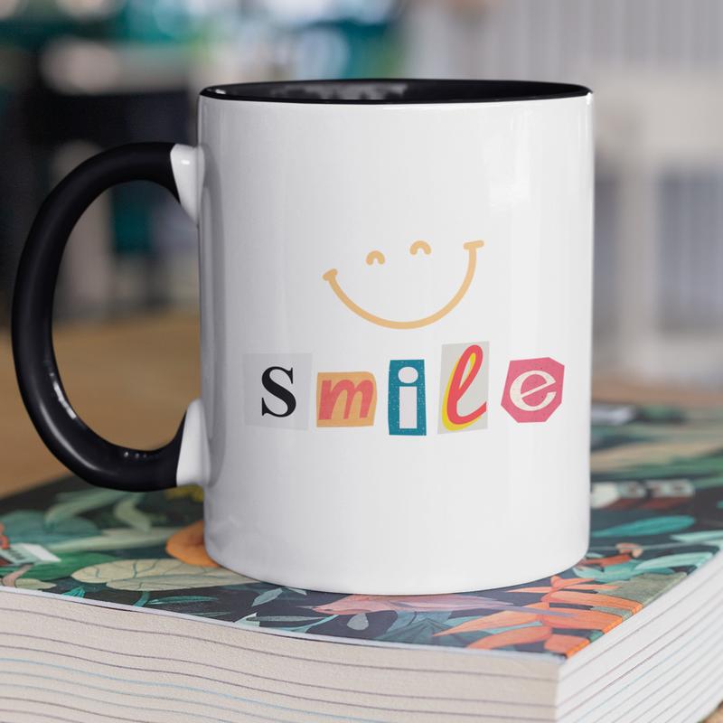 Чашка керамічна з принтом "smile" 330 мл, біла з чорною ручкою