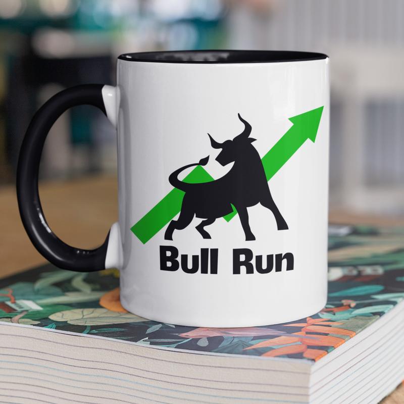 Чашка керамічна з принтом "bull run" 330 мл, біла з чорною ручкою