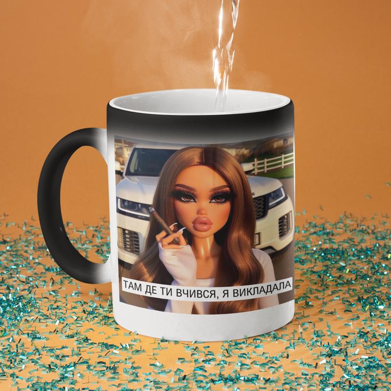 Чашка хамелеон керамічна з принтом "там де ти вчився я викладала" 330 мл