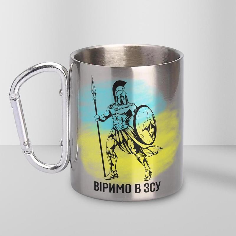 Кружка металева з карабіном "віримо в зсу" 300 мл срібляста