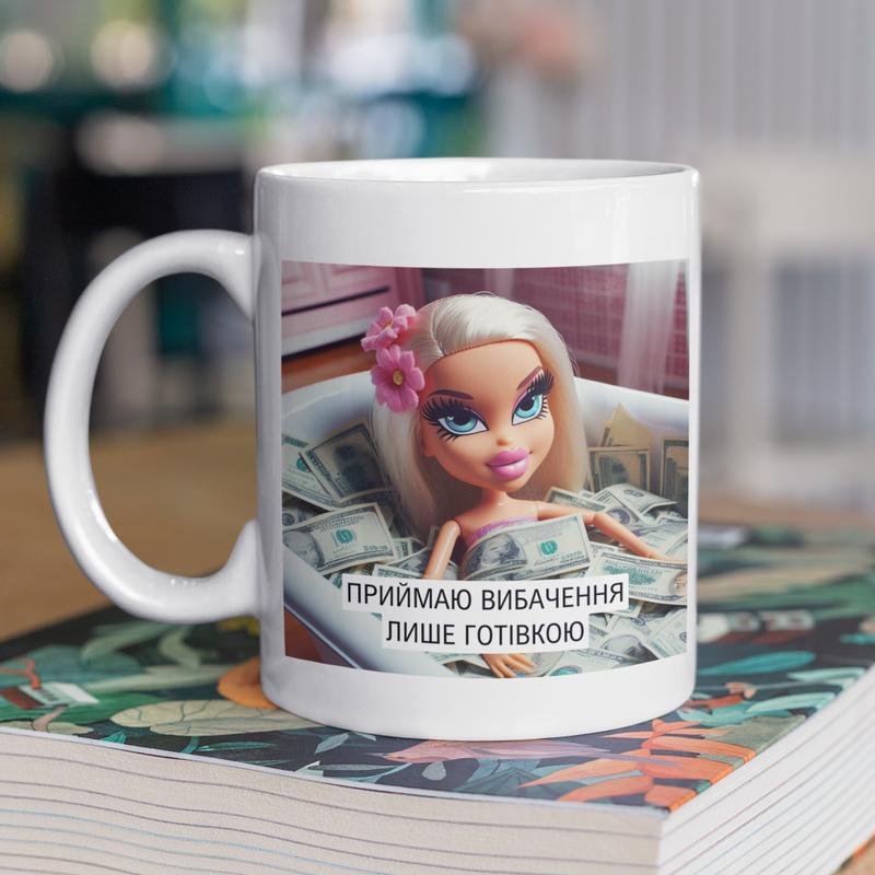 Чашка керамічна з принтом "приймаю вибачення лише готівкою" 330 мл, біла