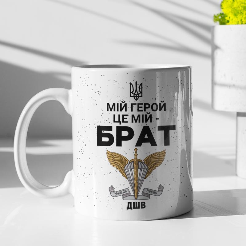 Чашка керамічна з принтом "мій герой це мій брат" 330 мл, біла