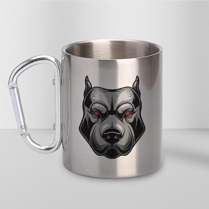 Чашка металева з принтом "пітбуль" 300 мл з карабіном, срібляста