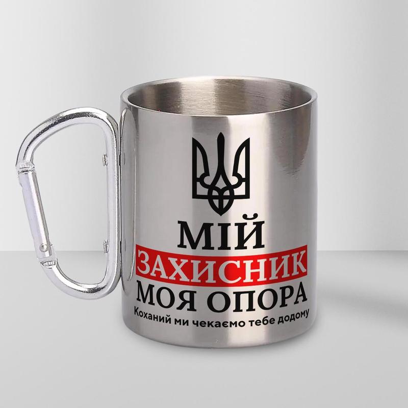 Кружка металева з карабіном "мій захисник" 300 мл срібляста
