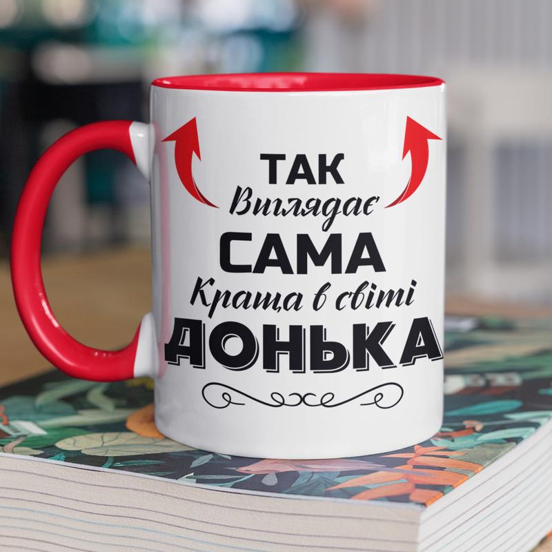 Чашка керамічна з принтом "так виглядає сама краща в світі донька" 330 мл, біла з червоною...