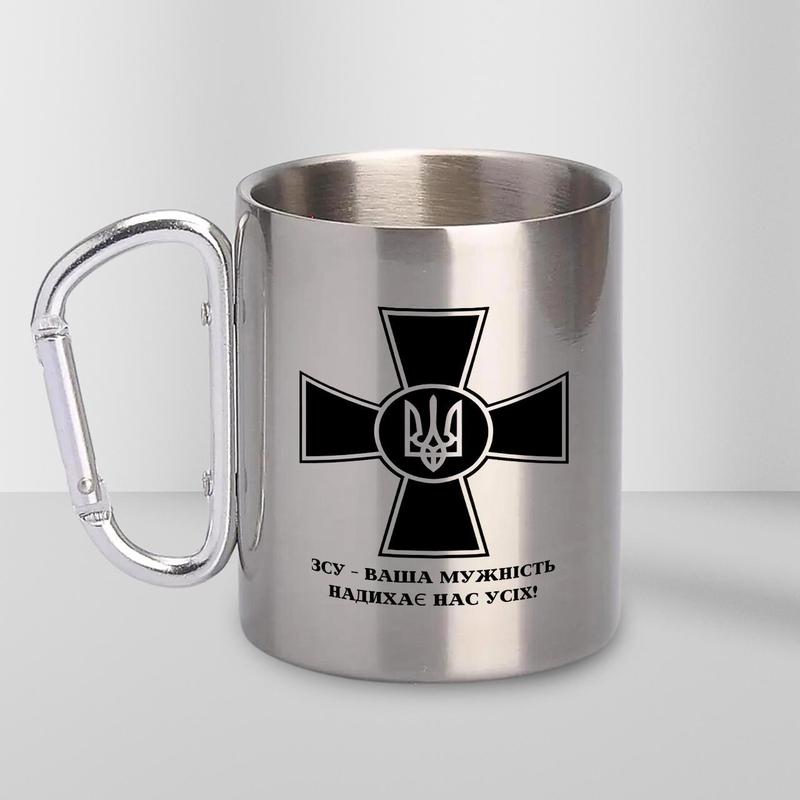 Кружка металева з карабіном "зсу" 300 мл срібляста